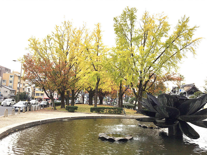 Today, ginkgo trees around the temple were starting to change the color into yellow. Some maple trees were also getting tinted. If you have a chance, please visit the temple and see, hopefully in Kimono.