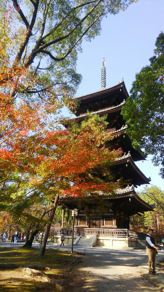 The five-storied pagoda on the premises was built in 1644, and now is designated as the important cultural property of Japan. Same as the one at Toji (東寺) temple, each story has almost the same height. It's interesting to learn about the feature of the buildings when you visit temples for autumn foliage viewing.